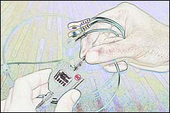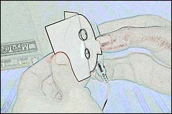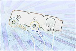 In order to allow bilateral placement on the same muscle group an Extender Cable is available. This extender cable plugs into the end of the Triode Electrode head that ships with the MyoTrac and allows a strip of 3 electrodes to be used together for a Frontalis placement or separated for placements on other muscles bilaterally (such as the temporalis, masseter, trapezius, etc. muscle groups).