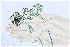 Illustration of a set of 3 separated individual pads after being snapped onto the extender cable. |